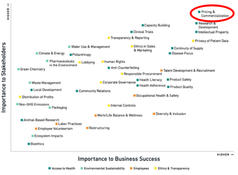...while bioethics and ecosystem impact make it to the bottom of a grid that maps the importance of the topic to stakeholders against the importance to business success. The extensively researched grid puts pricing on the top of importance for stakeholders & the business: a call for action on the health technology front...!